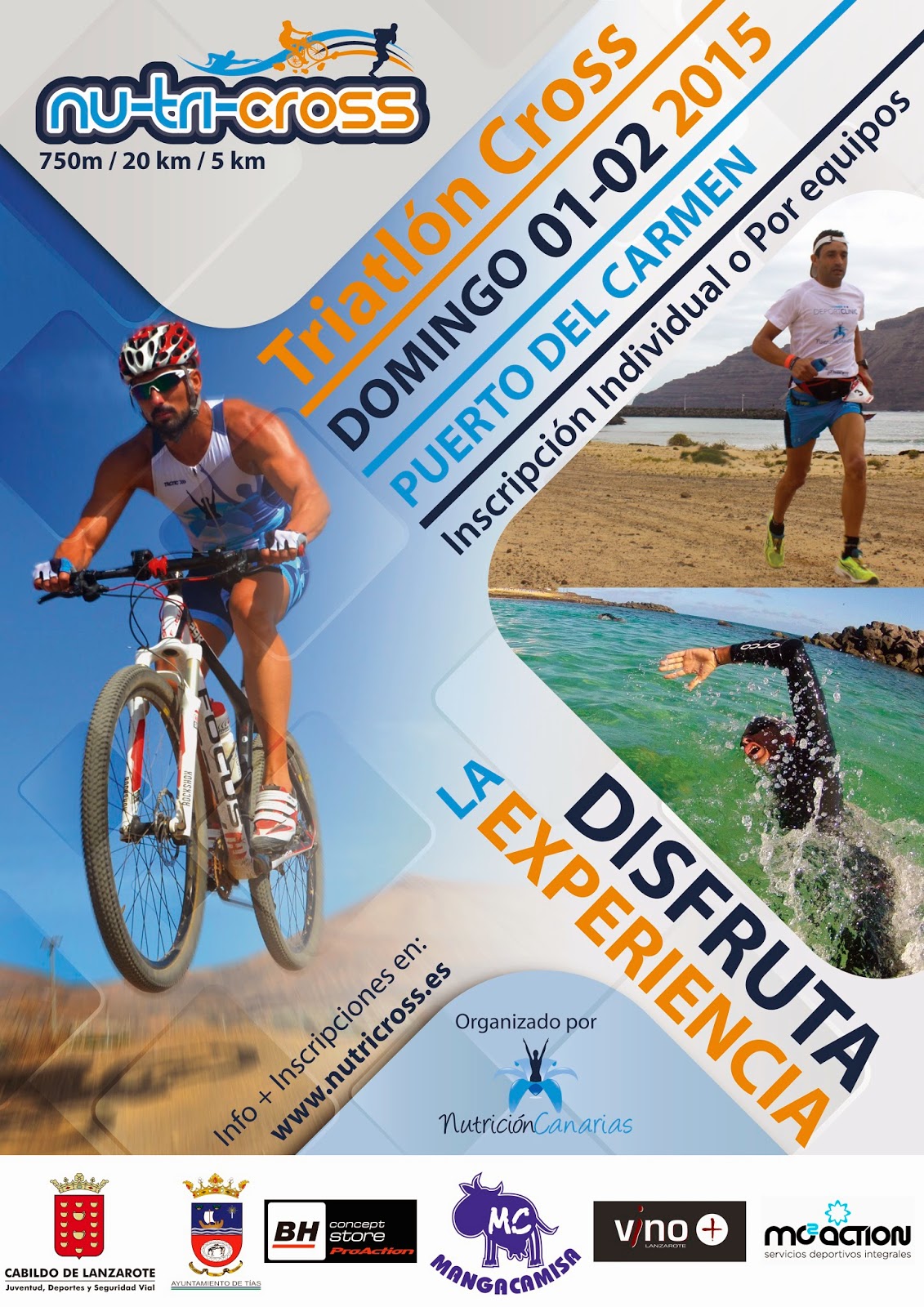 La primera edición de Nu–Tri-Cross estará organiza de manera conjunta por la empresa Nutrición Canarias y Miguel Ángel Duque, último campeón de Canarias de Triatlón Cross. Cuenta con el patrocinio de BH ProAction Puerto del Carmen, Restaurante Vino+ Lanzarote, Mangacamisa, MC2ACTION, Ayuntamiento de Tías y Cabildo de Lanzarote. Y la colaboración de Club La Santa, Ocean Lava, Powergym y Costa Volcán.