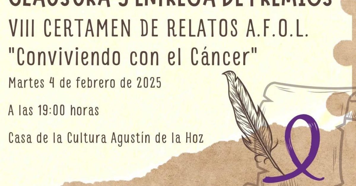 En el marco del Día Mundial contra el Cáncer, se celebrará la clausura y entrega de premios del VIII Certamen de Relatos AFOL-Conviviendo contra el Cáncer, organizado por la Asociación de Familias Oncohematológicas de Lanzarote (AFOL).