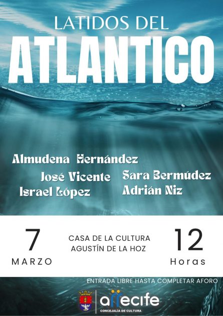 - 7 de marzo, 12:00h – Latidos del Atlántico con Almudena Hernández, Sara Bermúdez, José Vicente Pérez, Adrián Niz e Israel López de la Hoz.
