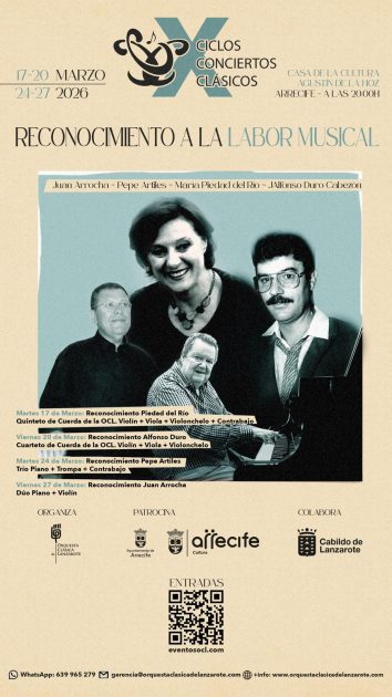 La programación de marzo refuerza el protagonismo de la música y la cultura en Arrecife, combinando recitales, ciclos clásicos, dramatizados y actividades dirigidas a todos los públicos.