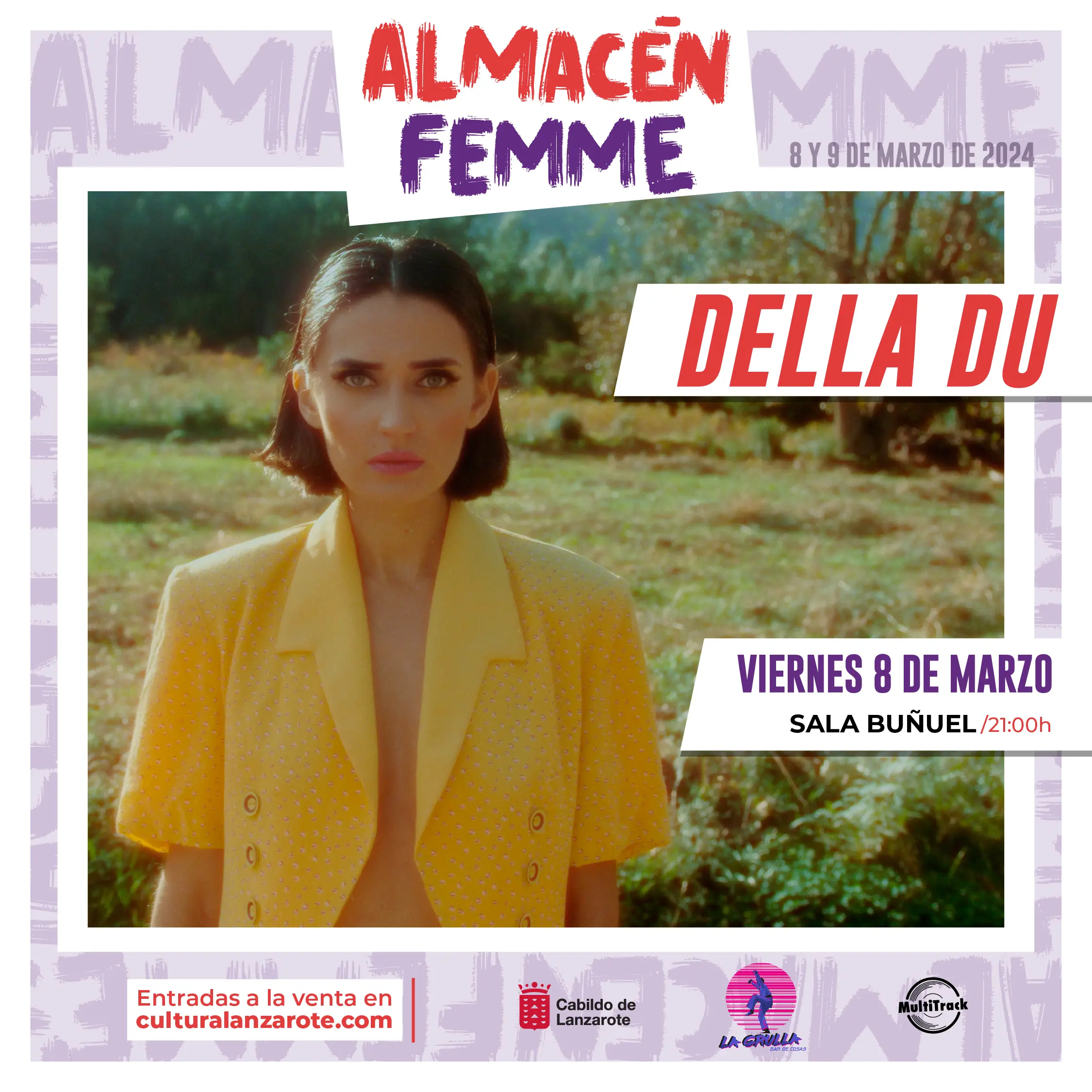 En una fusión única de ocio, reflexión y cultura, “Almacén Femme” presenta una cuidada selección de artistas que destacan el papel de la mujer en la música contemporánea. La brillante actuación de la cantante canaria Della Du inaugurará este evento, presentando una fusión alternativa y elegante de matices sonoros pop con influencias electrónicas y percusiones urbanas, creando una composición envolvente, relevante y dinámica.