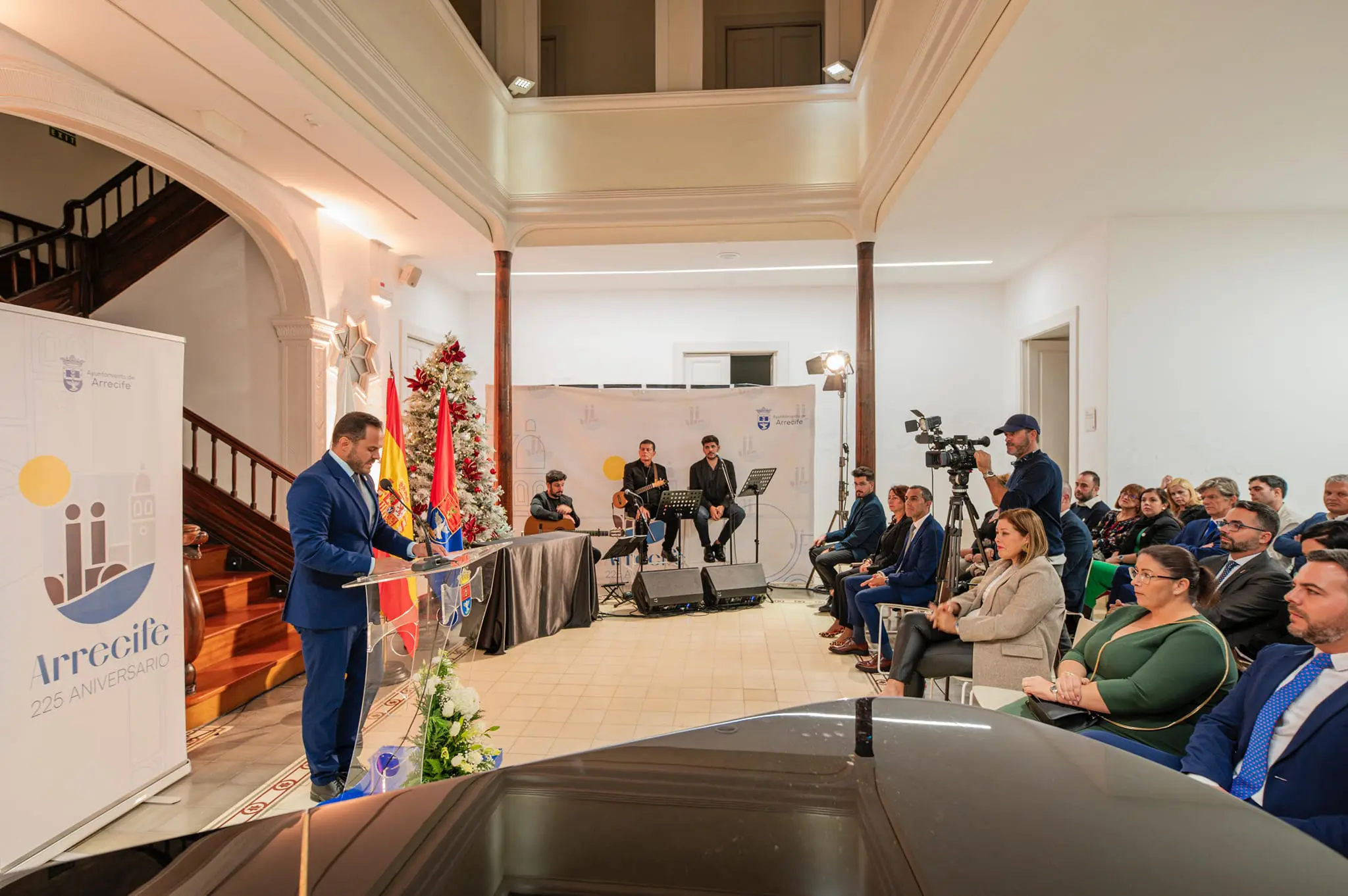 La actuación musical del timplista Benito Cabrera puso el cierre a este acto institucional de Arrecife en el inicio de la conmemoración del 225 aniversario. El evento fue presentado por la periodista María del Pino Fuentes, experta en protocolo.