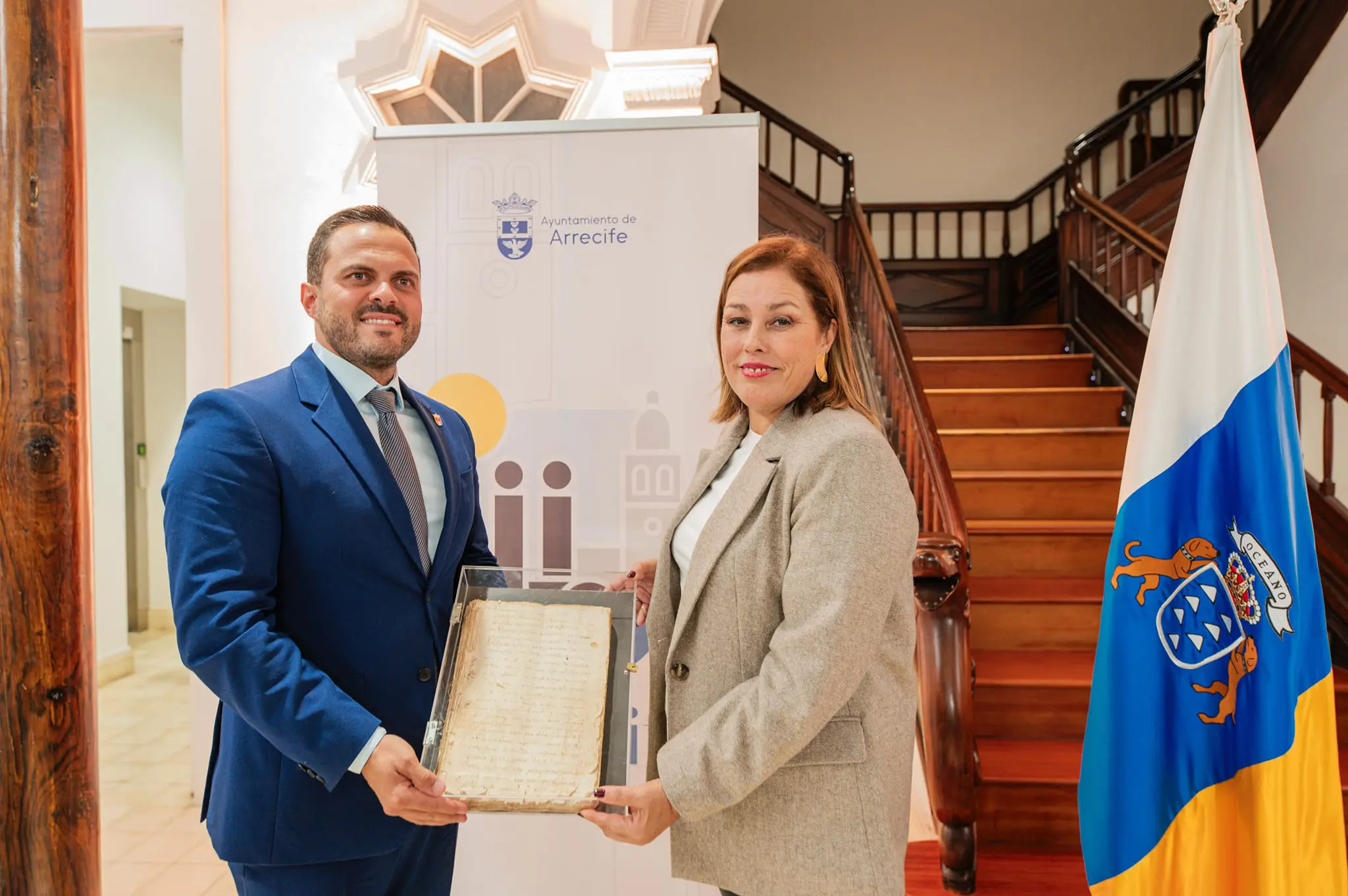 El acto contó con la exhibición del documento más antiguo que se custodia sobre la ciudad: Las Actas Fundacionales de la Municipalidad de Arrecife, del año 1798