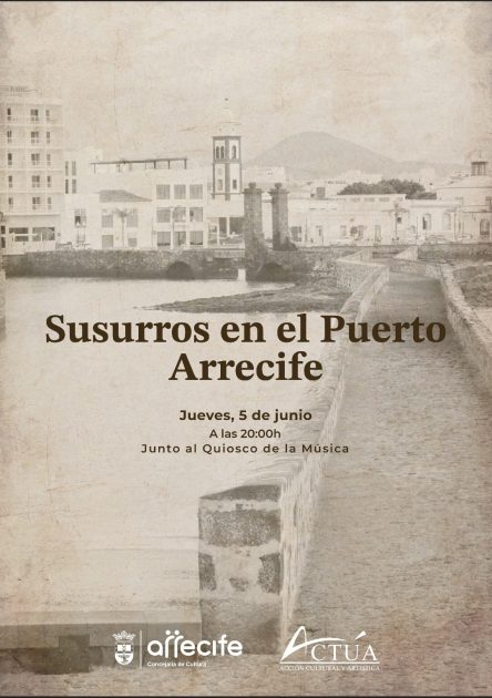 Una veintena de actores y actrices de la compañía Actúa 7 protagonizarán este jueves 5 ‘Susurros en el Puerto del Arrecife’, un paseo teatral con inicio a las 20 horas en el Quiosco de la Música y varias paradas durante su recorrido en las que se dará lectura o escenificarán obras de autores y autoras canarios como Ángel Guerra, Josefina Torres o Antonio Tabares. El itinerario finalizará en el citado parque tras atravesar La Plazuela y la calle Real entre otras.
