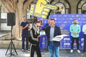 La concejala de Turismo, Comercio y Deportes de Arrecife, Eli Merino, subrayó “la valentía, el esfuerzo y el talento” de la productora Hsmith Solutions, y a cuyos representantes dedicó unas emotivas palabras y obsequió, en nombre de Turismo de Arrecife, dos cuadros creados por el artista Iván Térmpera. La concejal destacó que desde su Área de Turismo se está dinamizando la ciudad como lugar de eventos, y este festival va en esta línea.