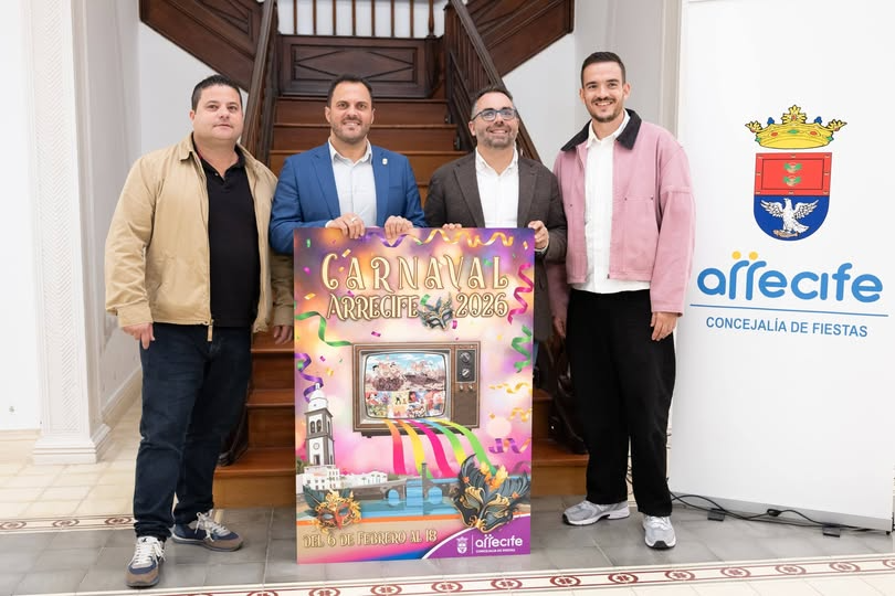 El Carnaval de Arrecife 2026 apostará por la nostalgia televisiva de los años 80 y 90, los grandes conciertos y la recuperación del carnaval en la calle, devolviendo el protagonismo al centro de la ciudad. Así se dio a conocer este viernes en la Casa de la Cultura Agustín de la Hoz, durante la presentación oficial del cartel, el programa y los pregoneros de esta edición.