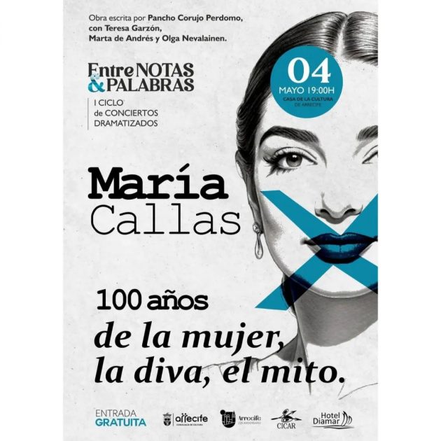 La Casa de la Cultura Agustín de la Hoz acoge a partir de las 19 horas de este sábado 4 de mayo el segundo de los conciertos dramatizados del ciclo ‘Entre notas y palabras’ organizado por Cultura Arrecife, que dirige la concejal Abigail González, en el que se escenificará una obra con la que el tenor lanzaroteño Pancho Corujo homenajea a la soprano María Callas al cumplirse en diciembre pasado el centenario de su nacimiento.