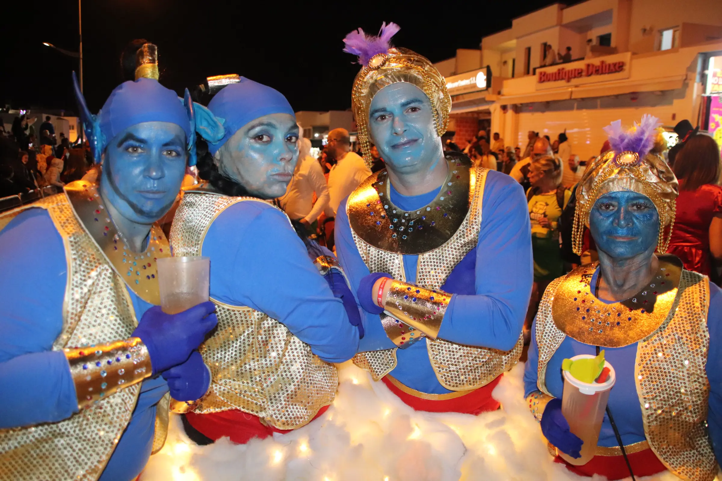 Algún indiano despitao de La Palma también apareció por Playa Blanca lleno de talco, igualmente damas glamurosas que vaciaron tiendas y armarios para ligar. Atuendos de última hora del chino y montones de mascaritas y disfraces elaborados con material reciclable se unieron para dar luz al recorrido de la alegría.