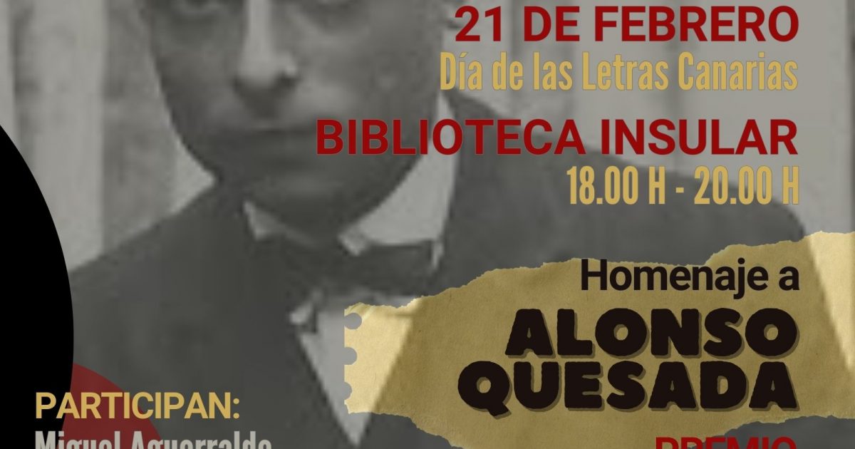 El Cabildo de Lanzarote, a través del Club de Lectura de la Biblioteca Insular, organiza una velada de lectura en voz alta este viernes, 21 de febrero, a las 18:00 horas, con motivo del Día de las Letras Canarias. Este año está dedicado a la figura de Alonso Quesada y contará con la participación de los autores canarios, Miguel Aguerralde, Ico Toledo y Carlos Battaglini. El acto estará conducido por Yolanda Ruano Laparra.