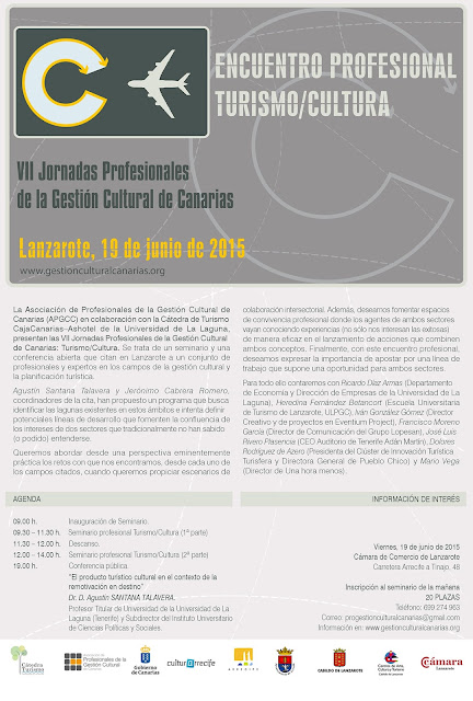El Ayuntamiento de Arrecife, a través de la Concejalía de Turismo que dirige Rafael Juan González, participará este viernes 19 de junio en las VII Jornadas Profesionales de la gestión cultural de Canarias: Turismo/Cultura