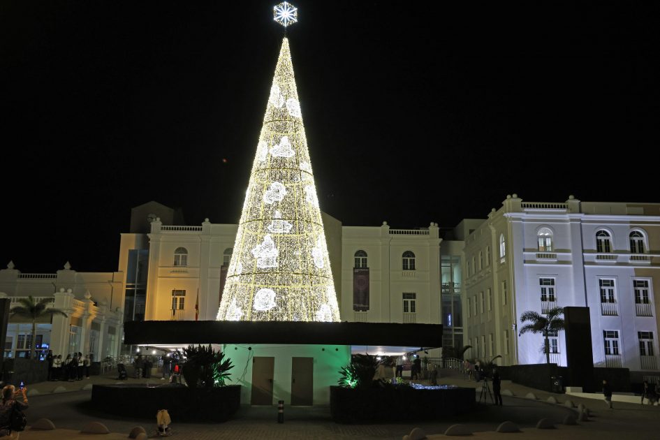 La escena, diseñada por Luis Acuña, que representa las raíces y tradiciones de la isla, estuvo acompañada por una réplica de trineo y renos navideños que completaron el conjunto decorativo.