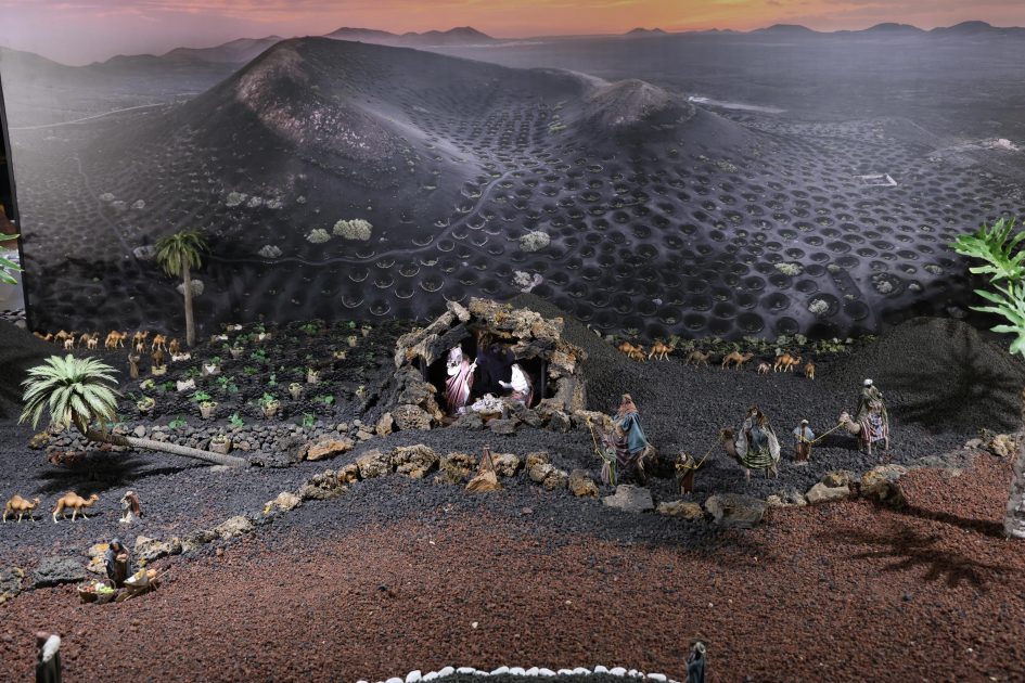 Junto al árbol, el portal de belén, inspirado en los paisajes de La Graciosa y el sector primario, es otro de los grandes atractivos de las noches navideñas.
