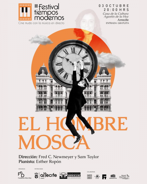 Con entrada libre hasta completar aforo, la Casa de la Cultura Agustín de la Hoz acoge desde las 20 horas la proyección de ‘El Hombre Mosca’, comedia dirigida en 1923 por Fred Newmeyer y Sam Taylor e interpretada por el genial Harold Lloyd, que irá acompañada por los acordes del pianista grancanario José Alberto Medina.