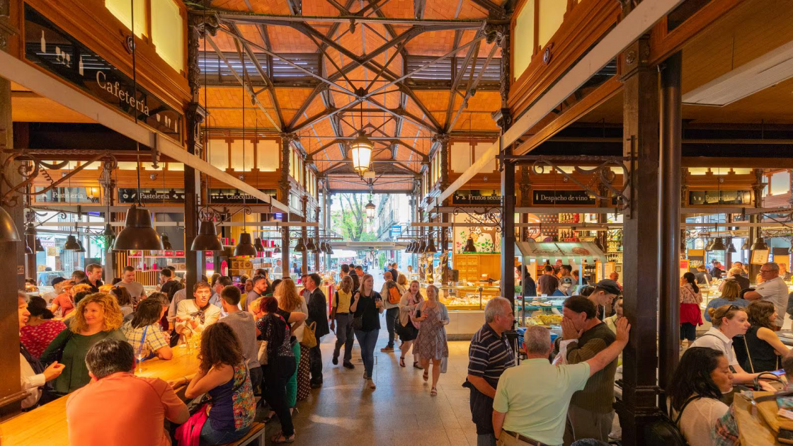 Allí se conserva el edificio histórico, pero los puestos que antaño ofrecían productos del campo hoy sirven cañas y vinos acompañados de jamón ibérico, marisco llegado diariamente desde Galicia, arroces mediterráneos o quesos de Castilla, Asturias y el País Vasco. Según anuncian en su página web, “lo más destacado de la gastronomía española a lo largo de más de 20 puestos que tienen en común su compromiso por el tapeo de calidad”.
