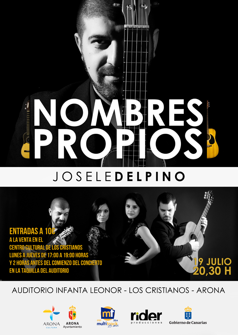 Josele del Pino, aventajado discípulo de Benito Cabrera (con quien estudió durante más de diez años), interpretará canciones que rememoran a estos personajes históricos, con el timple como vehículo expresivo. Nombres Propios, que produce Rider Producciones, combina imágenes, vídeos, textos y repertorio musical. Esta iniciativa rememora a figuras históricas nacidas en Canarias o bien que tuvieron una vinculación especial con el Archipiélago y que desarrollaron su carrera profesional en disciplinas como la música, literatura, ingeniería, artes plásticas o ciencias naturales.