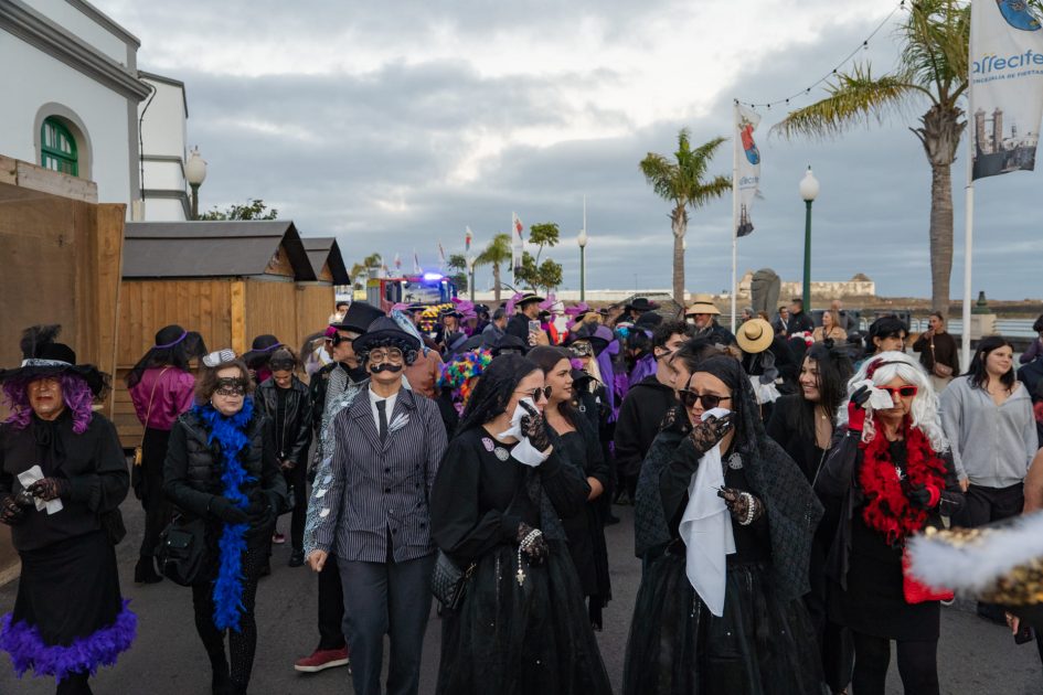 Todos ellos participaron desde su inicio en el Entierro del Pejín -característico del Carnaval de la capital lanzaroteña- y la Sardina, que partió a las 18 horas de las inmediaciones del Ayuntamiento y que contó al principio, hasta la altura de la Calle Real, con un tramo sin música y sin ruido estridente, en consideración con las personas con capacidades sensoriales especiales con el fin de que también pudieran disfrutar al máximo del coso como lo hizo la multitud que lo presenció a lo largo de todo su recorrido por la avenida marítima.