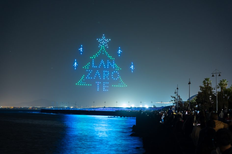 Estas aeronaves iluminaron el cielo con una deslumbrante recreación de figuras que combinaron motivos navideños con símbolos de la identidad cultural de Lanzarote y La Graciosa. Entre las representaciones destacaron la cuenta atrás para recibir el año nuevo, que precedió a la figura de un árbol de Navidad con el nombre de Lanzarote, las emblemáticas escenas de jolateros y barquillos del Charco de San Ginés, la icónica sombrera graciosera, el Monumento al Campesino, la Plaza de los Leones de Teguise, la Playa Grande de Puerto del Carmen y la Ermita de los Dolores, en Tinajo.