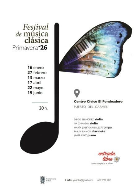 Así mismo, el Festival de Música Clásica Primavera ‘26 contará con seis conciertos gratuitos que se celebrarán en el Centro Comercial El Fondeadero, en Puerto del Carmen, consolidando este espacio como escenario cultural de referencia.