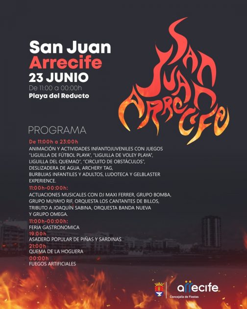En un evento que promete ser inolvidable, arrecifeños y visitantes se reunirán en la playa del Reducto el próximo domingo 23 de junio para disfrutar de una jornada llena de actividades para todas las edades, gastronomía y música, que culminará con el tradicional asadero popular de piñas y sardinas, y la gran quema de la hoguera.