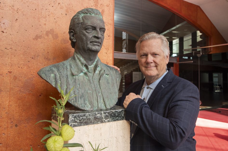 Hoy, se ha celebrado la tradicional ofrenda floral en el busto de Alfredo Kraus en el hall del Auditorio, presidida por su hija Rosa Kraus Ley, presidenta de la Fundación Internacional Alfredo Kraus, y Laura Kraus Ley, vocal de la misma fundación, acompañadas por su nieta Silvia Benincasa Kraus. También han participado Guacimara Medina, consejera de Cultura del Cabildo de Gran Canaria, Manuel Benítez, gerente de la Orquesta Filarmónica de Gran Canaria y Tilman Kuttenkeuler, director general de la Fundación Auditorio y Teatro de Las Palmas de Gran Canaria.