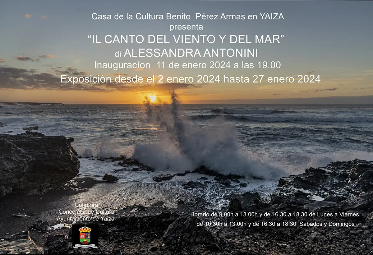 IL Canto del viento y del mar. Alessandra Antonini. Inauguración de la exposición 11 de enero a las 19 horas. Abierta del 2 al 17 de enero en la Casa de La Cultura Benito Pérez Armas. Yaiza