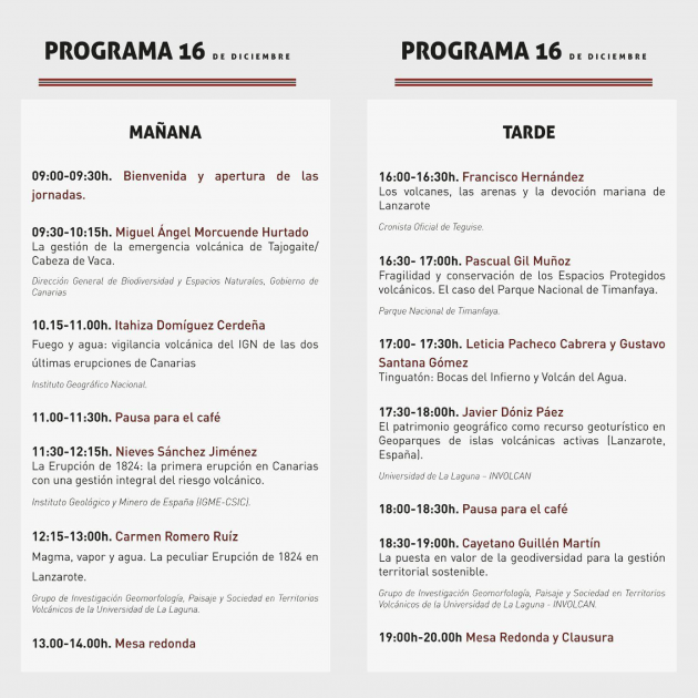 La inscripción ya está abierta y puede realizarse de forma gratuita a través del siguiente enlace: www.inscribirme.com/jornadas-erupciones1824
