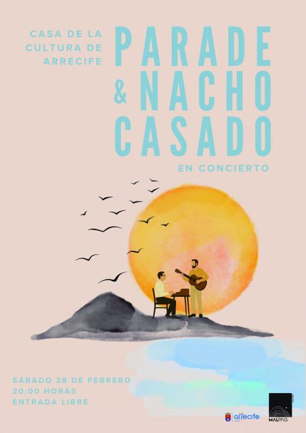 La Casa de la Cultura Agustín de la Hoz será escenario este sábado 28 de febrero, a las 20:00 horas, del concierto que ofrecerán Parade & Nacho Casado, dentro de la programación impulsada por Cultura Arrecife, área que dirige la concejala Abigail González, en colaboración con Malpaís Récords.