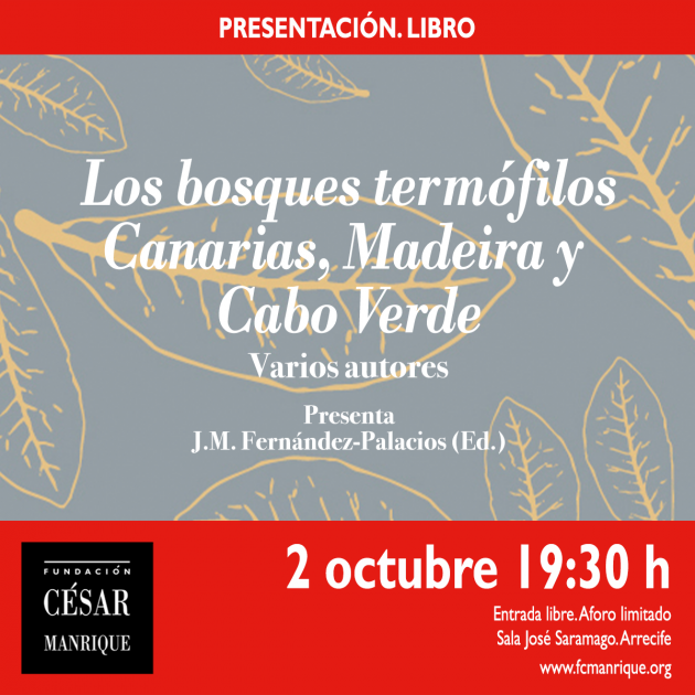 La Fundación César Manrique (FCM) presentará el jueves 2 de octubre a las 19:30 horas la publicación científica titulada “Los bosques termófilos. Canarias, Madeira y Cabo Verde”, un exhaustivo trabajo de investigación coordinado por José María Fernández-Palacios, catedrático de Ecología de la Universidad de La Laguna.