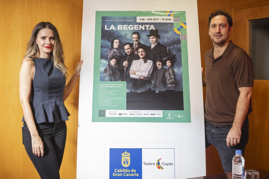 La consejera de Cultura del Cabildo de Gran Canaria, Guacimara Medina; el director artístico del Teatro Cuyás, Gonzalo Ubani, el actor Álex Gadea y la actriz Elena Ballesteros presentaron la obra La Regenta, de Leopoldo Alas Clarín, que se representará este viernes y sábado a las 19:30 horas.