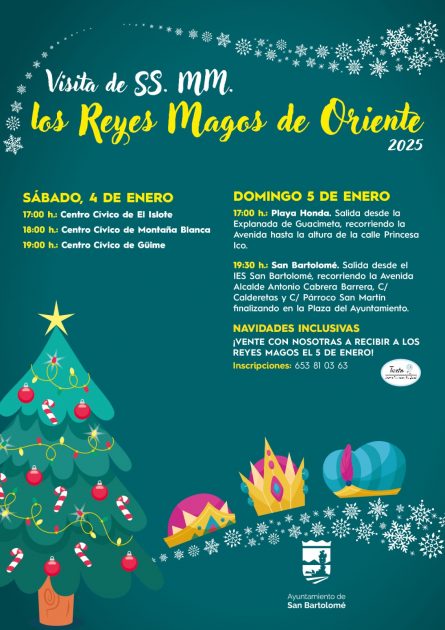 El Ayuntamiento de San Bartolomé, en aras de facilitar el trabajo de SS.MM los Reyes Magos de Oriente ante su inminente visita al municipio, anuncia a las familias el recorrido que realizarán próximamente.