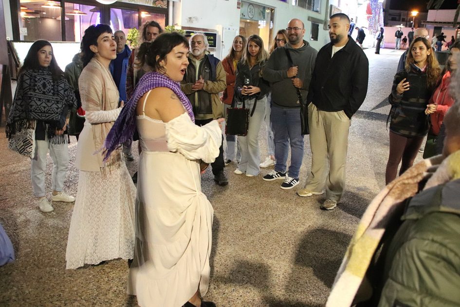 De espaldas al Atlántico, en la actuación, pero no en la evocación más bella de sus aguas como inspiración de sentimientos y emociones, aunque también de frente, en lo que esconde la inmensidad de la mar para las duras travesías de miles y miles de personas migrantes. Así, cuerdas, voces y versos transportaron a los espectadores a la contradicción diaria de la vida, de alegrías y tristezas, a otras realidades, por ejemplo, la del desarrollo y bienestar, frente a la masificación turística de Canarias.