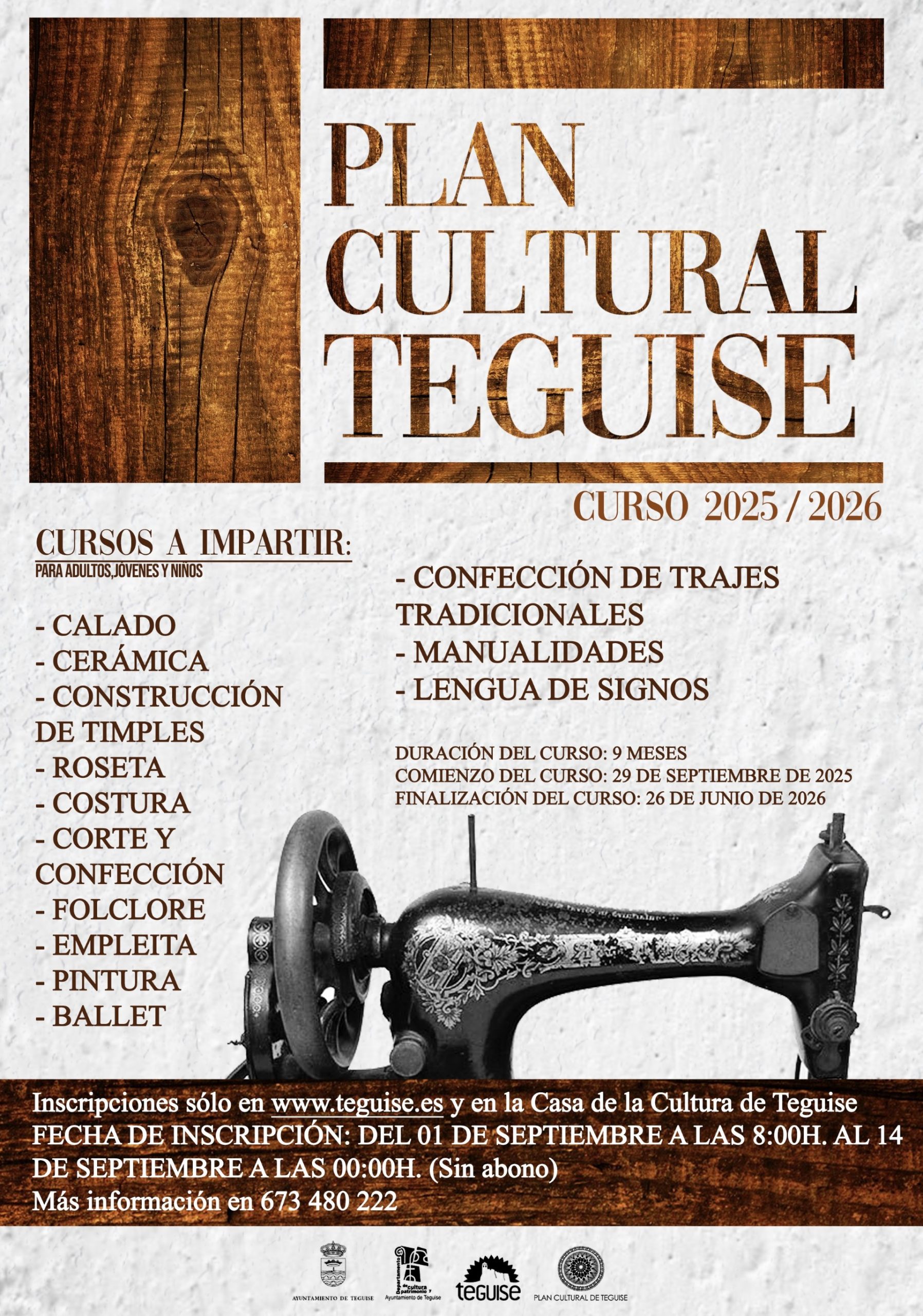 El Ayuntamiento de Teguise anuncia la apertura del plazo de inscripción para el Plan Cultural 2025/2026, un programa que lleva más de tres décadas acercando la tradición, el folclore y la cultura a todos los pueblos del municipio, convirtiéndose en una de las iniciativas culturales más consolidadas de Canarias.