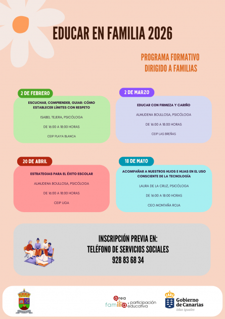 El programa Educar en Familia es una iniciativa de colaboración entre el Ayuntamiento de Yaiza y la Consejería de Educación, Formación Profesional, Actividad Física y Deportes del Gobierno de Canarias.