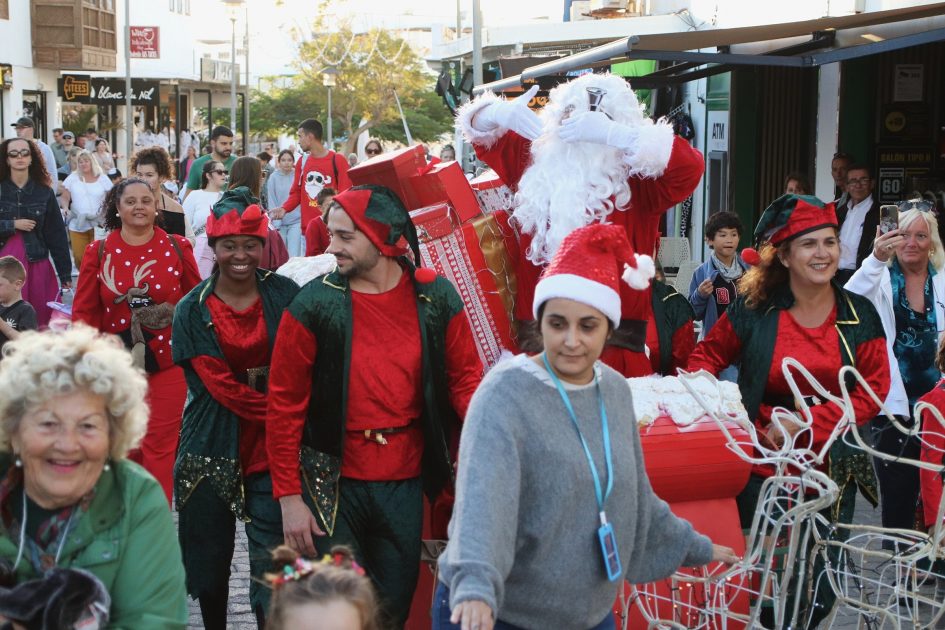Papá Noel llegó a Playa Blanca la víspera de Navidad para llenar de ilusión la localidad turística sureña, que se volcó este martes con el barbudo en su alegre recorrido por la calle Limones. Música, duendes, zancudos y personajes fantásticos animaron el pasacalle que finalizó con la tradicional sesión de fotografías al lado del árbol navideño instalado en la zona comercial abierta de Playa Blanca.ecenas de familias participaron de este encuentro fraternal donde las sonrisas y las expresiones de felicidad quedaron registradas en fotos y vídeos. Ya es costumbre la presencia de Papá Noel en Playa Blanca la víspera de Navidad y son muchos los vecinos, vecinas y turistas que esperan esta cita con la fantasía.