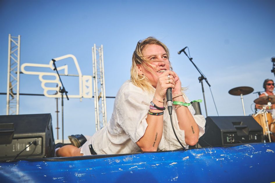 En el muelle de cruceros Zahara presentó su último trabajo Lento Ternura en una exhibición de arte total. Acompañada en el escenario por Martí Perarnau, Manuel Cabezalí y Xavi Molero, Zahara usó su voz y su cuerpo, se apoyó en las imágenes de la pantalla, en coreografías, en objetos como chalecos salvavidas o policlines para desgranar uno de sus discos más conceptuales y arriesgados. La artista volvió a manifestar su amor por Lanzarote y su fascinación por los volcanes de los que dijo “queremos aprender mucho más”.