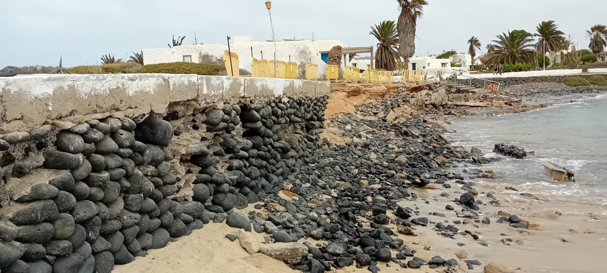El Ayuntamiento de Teguise inicia el proceso de licitación para la reparación del muro en el pueblo de Pedro Barba, en La Graciosa, que fue destruido a causa de anteriores fenómenos meteorológicos registrados en la isla.