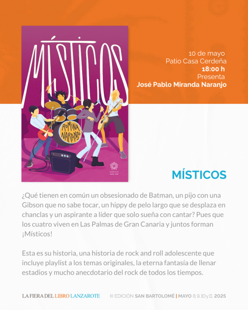 La escritora Romina Naranjo participará en la Fiera del Libro de Lanzarote con la presentación de su libro, Místicos, Esta es su historia, una historia de rock and roll adolescente que incluye playlist a los temas originales, la eterna fantasía de llenar estadios y mucho anecdotario del rock de todos los tiempos.