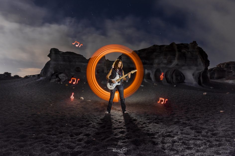 En la escena aparece como modelo Ceci, una joven guitarrista eléctrica, cuya colaboración fue clave para el resultado final. Rosa García quiso agradecer especialmente su implicación y paciencia, ya que mantener una pose completamente estática durante varios minutos es uno de los grandes retos de este tipo de fotografía nocturna.