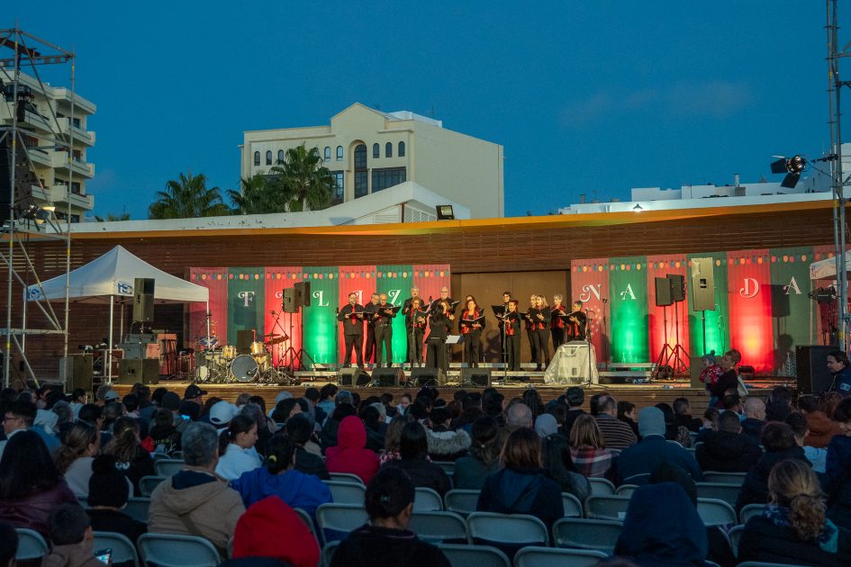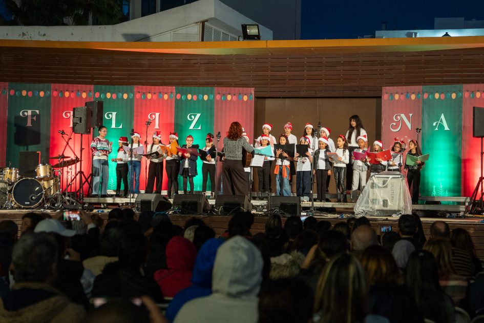 Más de cien niños y niñas de distintos centros educativos del municipio subieron al escenario para interpretar junto a la artista una nueva versión de su mítico villancico En Navidad, titulada En Navidad 2025… Navidad en Blanco, lanzada el pasado 28 de noviembre. Una actuación inesperada que desató la ovación del público y que fue recibida con nervios, ilusión y asombro por parte de los pequeños protagonistas.
