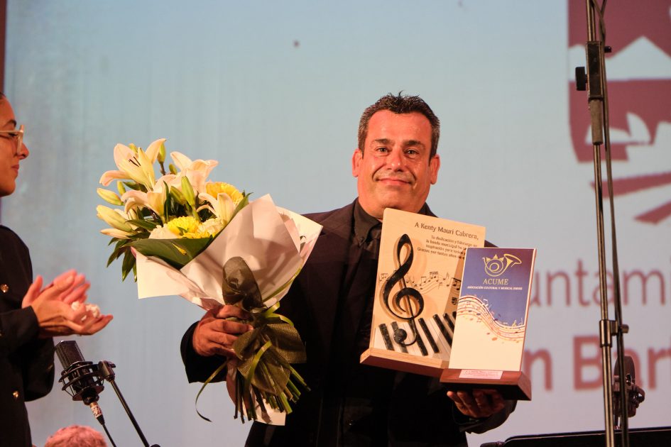 La velada estuvo marcada por un momento muy emotivo como fue el reconocimiento al trabajo y entrega del director de la Banda Municipal de Música de San Bartolomé, Kenty Mauri Cabrera, durante sus 17 años de trayectoria.