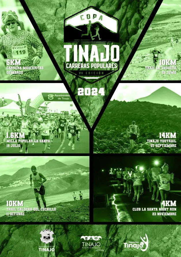 La Copa de Carreras Populares de Tinajo está formada en este 2024 por la Carrera de Mascaritas (5 km-2 de Marzo) organizada por Cronoline Canarias; Trail La Vegueta (10 km-29 de Junio) organizada por la Comisión de Fiestas de La Vegueta; la Milla Popular de La Santa (Milla-19 de Julio), Tinajo You Trail (14 km-7 de Septiembre) organizada por la Concejalía de Deportes, el Trail Caldera El Cuchillo (10 km-11 de Octubre) organizada por Club Azarug y se cerrará con la Night Run Club La Santa (4 km-23 de Noviembre), organizada por Club La Santa.