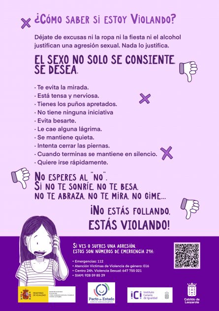 La campaña recuerda que permanecen activos durante las 24 horas el teléfono de emergencias 112, el servicio 016 de atención a víctimas de violencia de género, el Centro 24 horas de violencia sexual y el Servicio Insular de Atención a la Mujer (SIAM), con el objetivo de garantizar una respuesta rápida y eficaz ante cualquier situación.