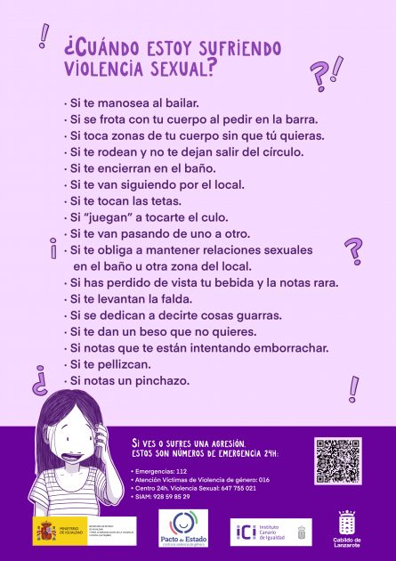 La campaña cuenta con una imagen ilustrada por la artista Lola Vendetta y se complementa con materiales informativos que identifican de forma clara situaciones que constituyen violencia sexual, así como los pasos a seguir ante cualquier incidente. Además, incorpora un código QR que permite acceder directamente a teléfonos de emergencia, recursos de atención especializada y protocolos de actuación.