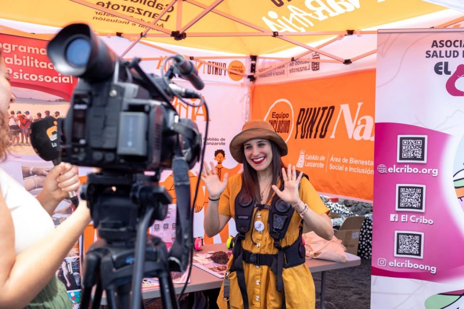 Con el objetivo de que la música y la cultura pudiese ser disfrutada por todos los asistentes, dicho punto naranja contó con una tecnología innovadora: un chaleco sensitivo. Esta mochila sensorial contribuye a que las personas con limitada o nula audición puedan experimentar el ritmo de las melodías que se emiten cerca de quien la lleva puesta. La artista sorda conejera, Guio Santana, estuvo también en el stand apoyando la iniciativa e informando sobre las particularidades del innovador sistema.