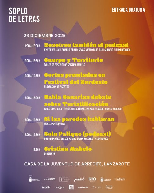 ‘Soplo de Letras’ “es un proyecto que invita a divertirse con un cartel de lujo, repleto de talento canario en diferentes disciplinas como la música, la comedia, las artes plásticas y el cine, y que además abarca conferencias, debates y talleres formativos y participativos”.