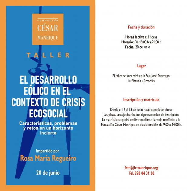 La Fundación César Manrique organiza el taller “El desarrollo eólico en el contexto de crisis ecosocial” impartido por Rosa Mª Regueiro