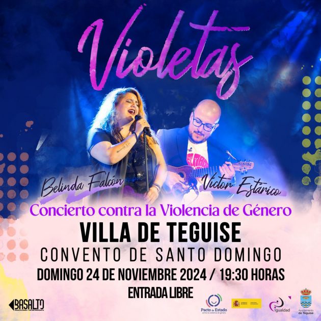 Por último, este día culminará con la celebración gratuita del concierto contra la Violencia de Género de Belinda Falcón y Victor Estárico, a las 19:30 horas, en el Convento de Santo Domingo