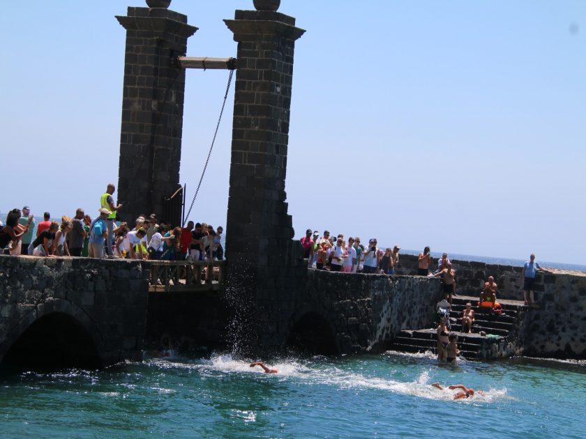 Hasta la playa de La Rocar se desplazaron los nadadores y nadadoras de la categoría infantil, júnior y máster, donde estaba situada la línea de salida de la prueba. El alcalde de Arrecife, Yonathan de León, junto al vicepresidente del Cabildo de Lanzarote, Jacobo Medina, fueron los encargados de dar la salida a los más de 150 participantes.