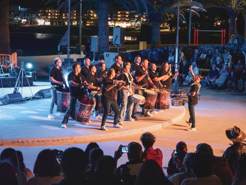 Más allá de los nombres, lo que hace especial a Bio Ritmos es su atmósfera. El festival se celebra en un enclave natural privilegiado, frente al mar, y crea una conexión casi mágica entre músicos y público. La gente se deja llevar por los sonidos, y no es raro ver a más de uno bailando descalzo sobre la piedra de la plaza, dejándose envolver por los tambores, las flautas, las cuerdas y los aplausos. Este año, además, la comparsa local Cumbacheros animó los interludios entre actuaciones, aportando ritmo y colorido en cada transición.