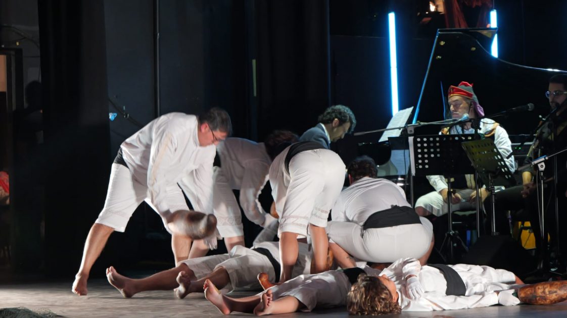 El evento se inició con la voz en off de Roberto Gil recitando un texto poético de Machado sobre la identidad canaria. Al levantarse el telón, ocho danzantes vestidos de blanco interpretaron la pieza Danza de Los Renegados, compuesta por Ernesto Alemán tras investigar el legado buchero. La coreografía, diseñada por Rubén Valiente y Vanessa Pérez, combinó comicidad, solemnidad y elementos contemporáneos, emocionando al público.